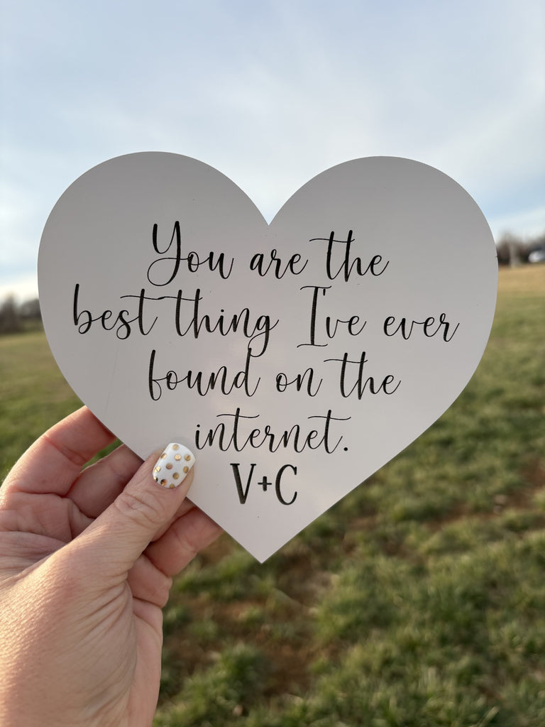 This engraved heart sign with the couple's initials inside adds a personal touch to your home decor or tiered trays. Perfect for a newlywed couple or for couples who been together for a long time, this sign is a cute and fun way to celebrate each other.